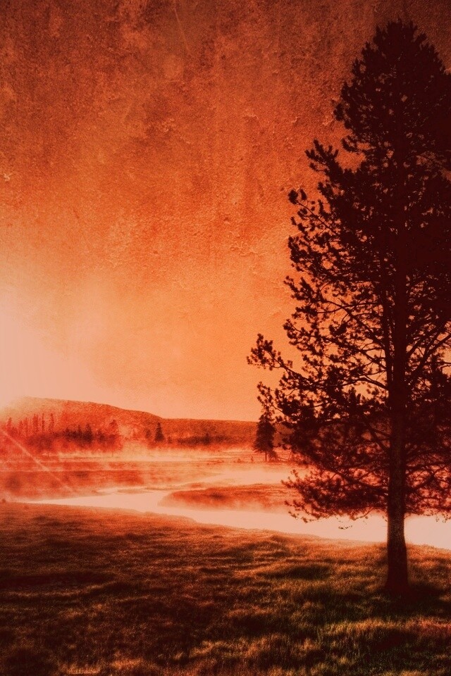 Обои для рабочего стола «Закат за речкой» 640х960 с фильтром toaster (оригинал 2560х1600)