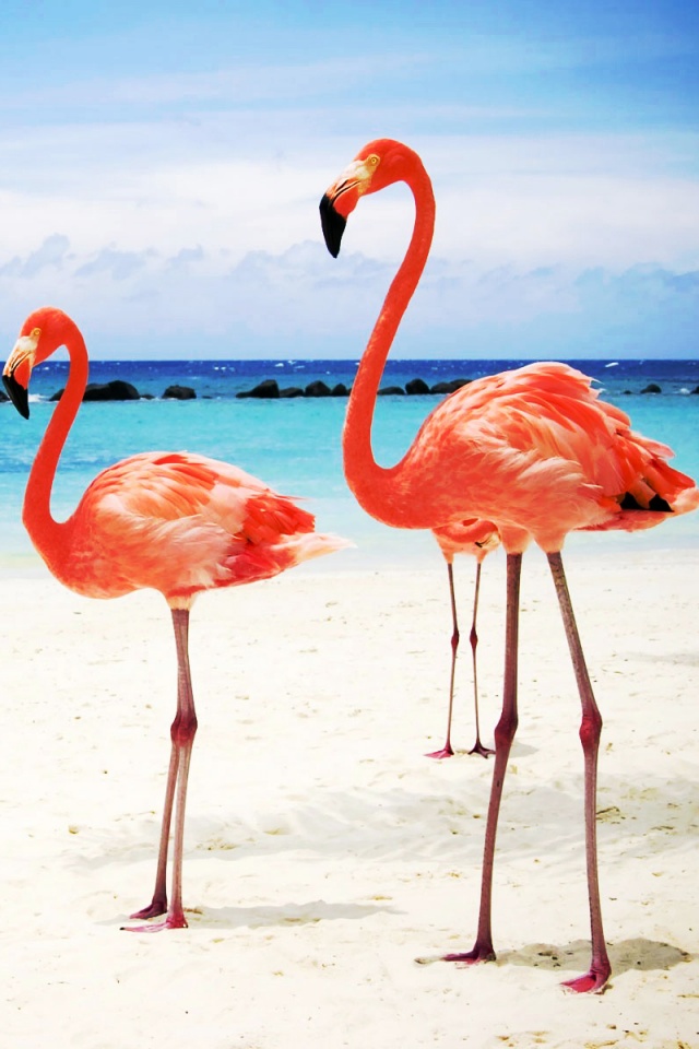 «Розовые фламинго на пляже»