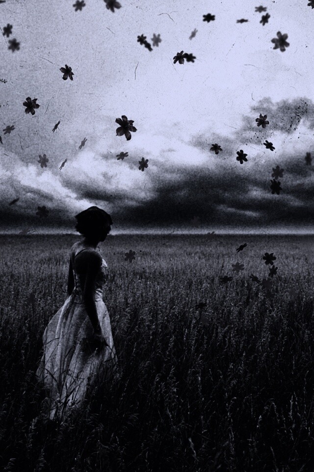 «Грустная девушка в поле травы»
