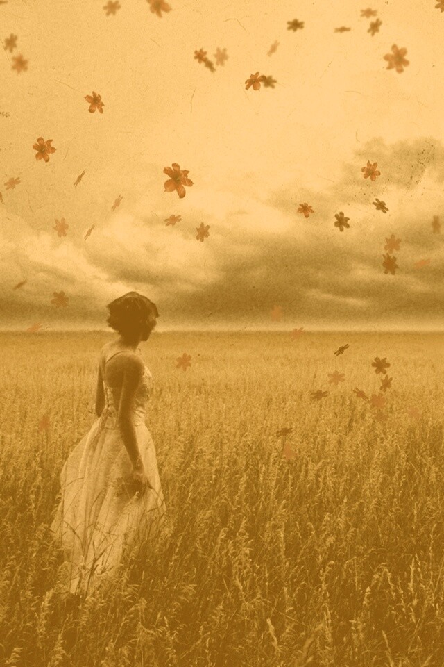 «Грустная девушка в поле травы»