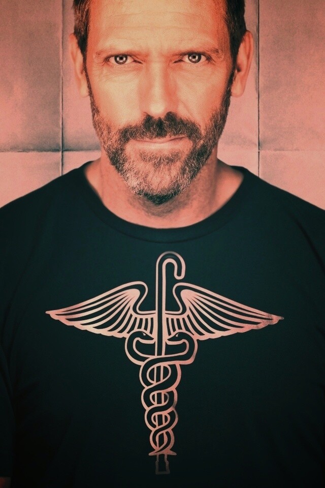 «Доктор Хаус в футболке со змеями на трости»