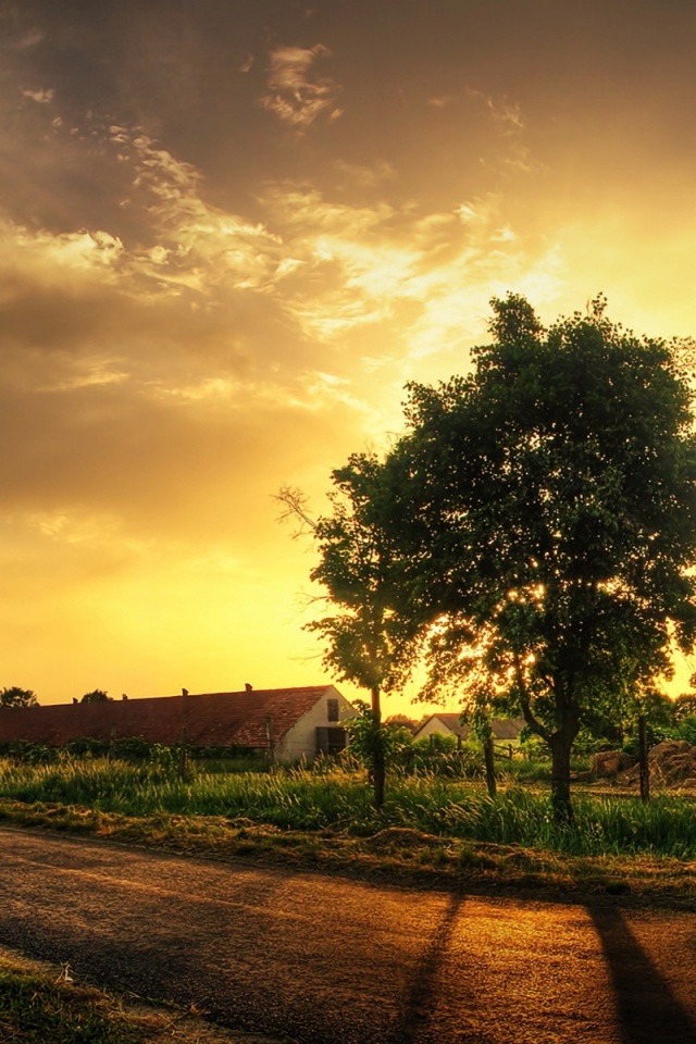 «Закат на фоне дерева в HDR»