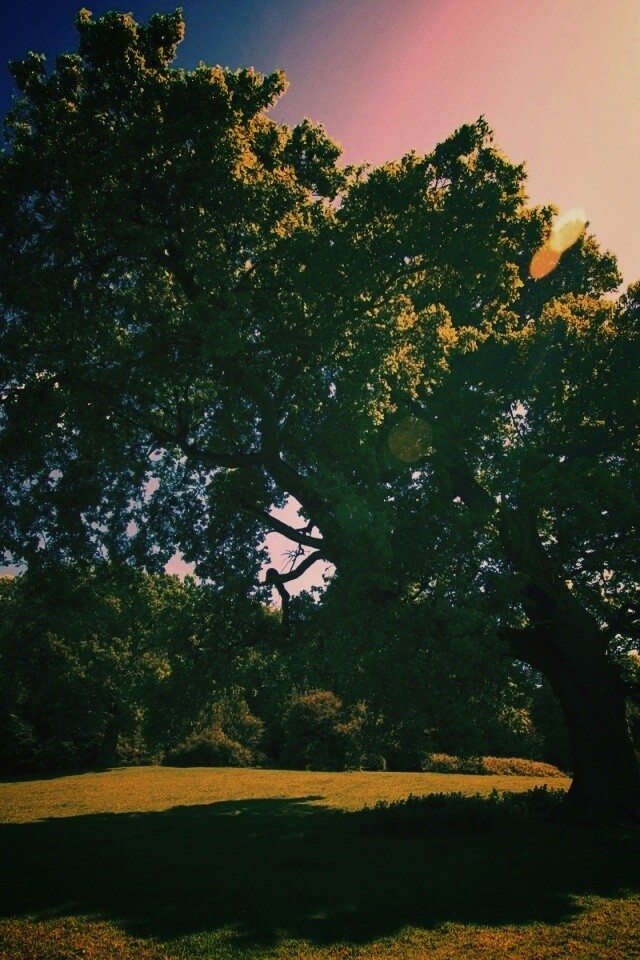 «Большое зеленое дерево на лужайке»