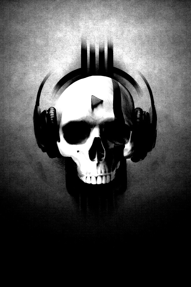 Обои для рабочего стола «Череп в наушниках» 640х960 с фильтром inkwell (оригинал 2560х1600)