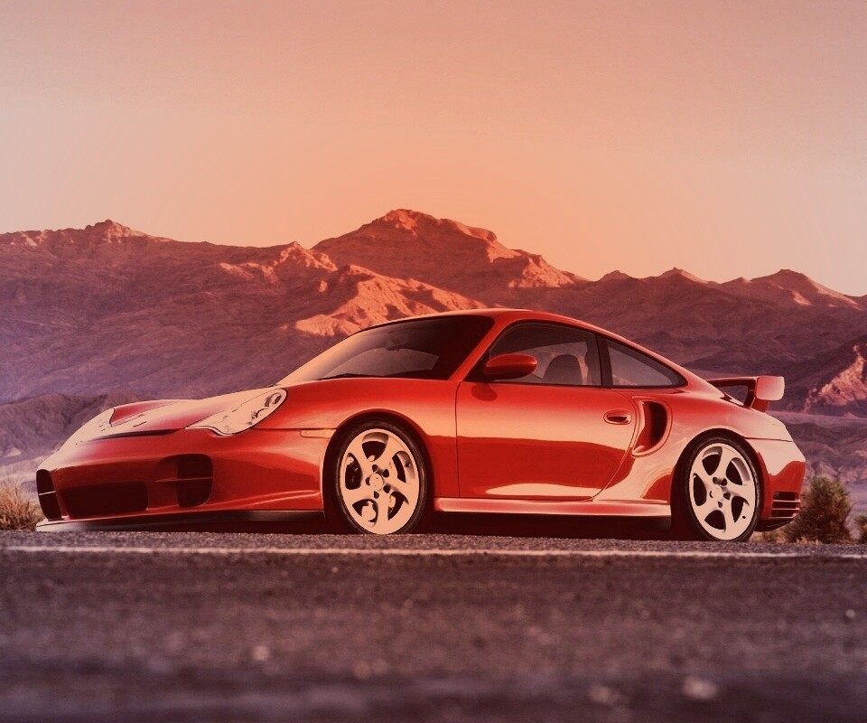 «Красный Порше на фоне гор»