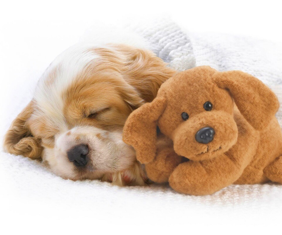 Обои для рабочего стола «Собака спит с игрушкой» 960х800 с фильтром vibrance (оригинал 1920х1200)