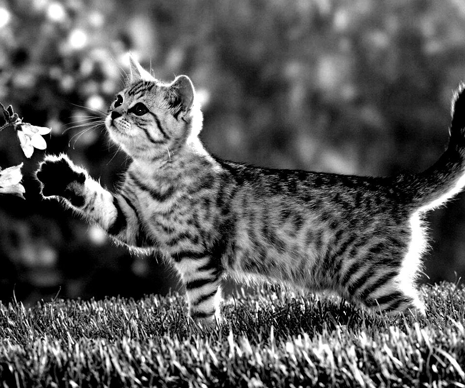 «Котенок играет с цветами»