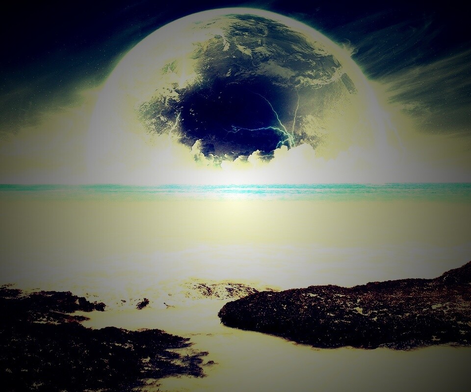 «Огромная луна над океаном»