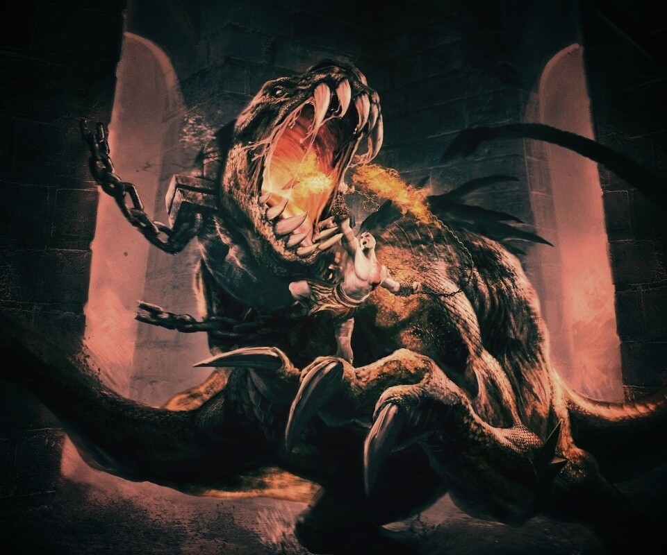 «Кратос против динозавра»