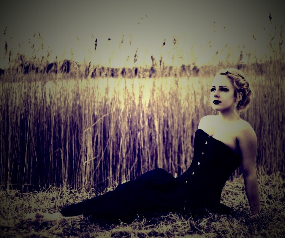 «Девушка на траве в черном корсете»