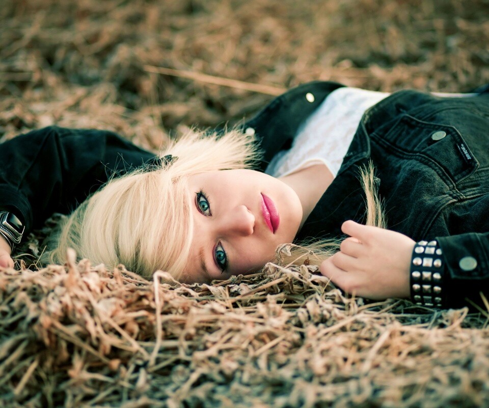 «Блондинка лежащая на траве»
