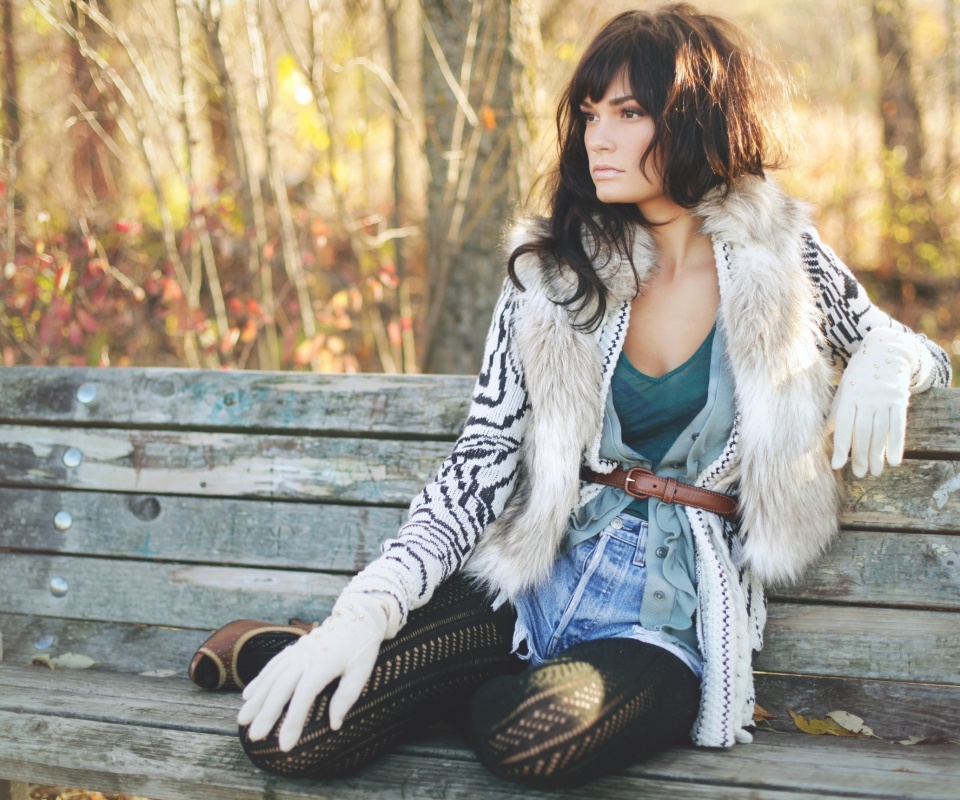 «Красивая девушка сидит на скамейке»