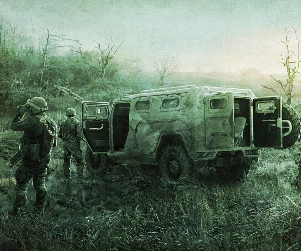 «Солдаты из сталкера на болоте»