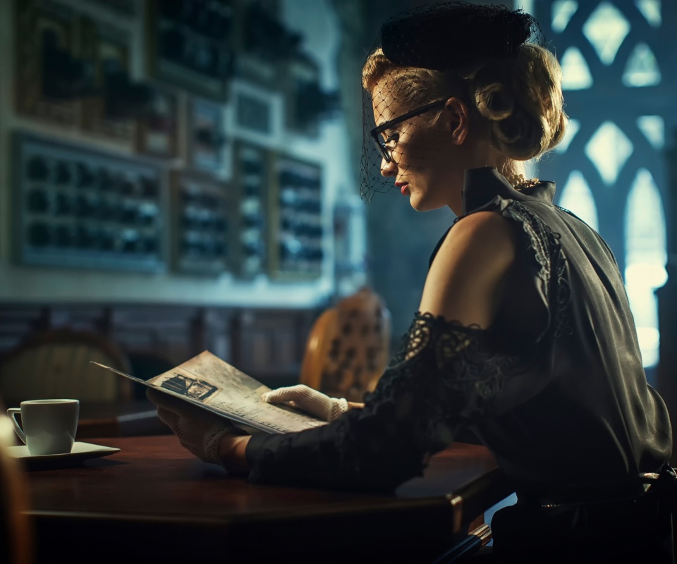 «Витажная девушка в кафе»