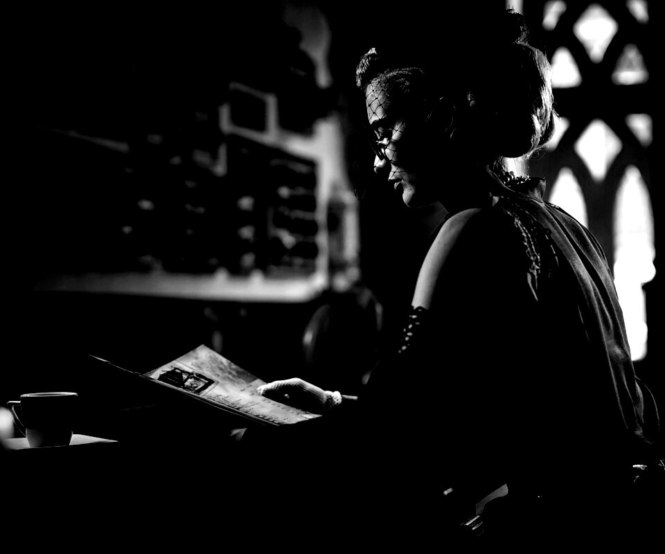 «Витажная девушка в кафе»