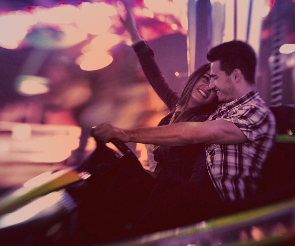 «Счастливая пара на аттракционах»