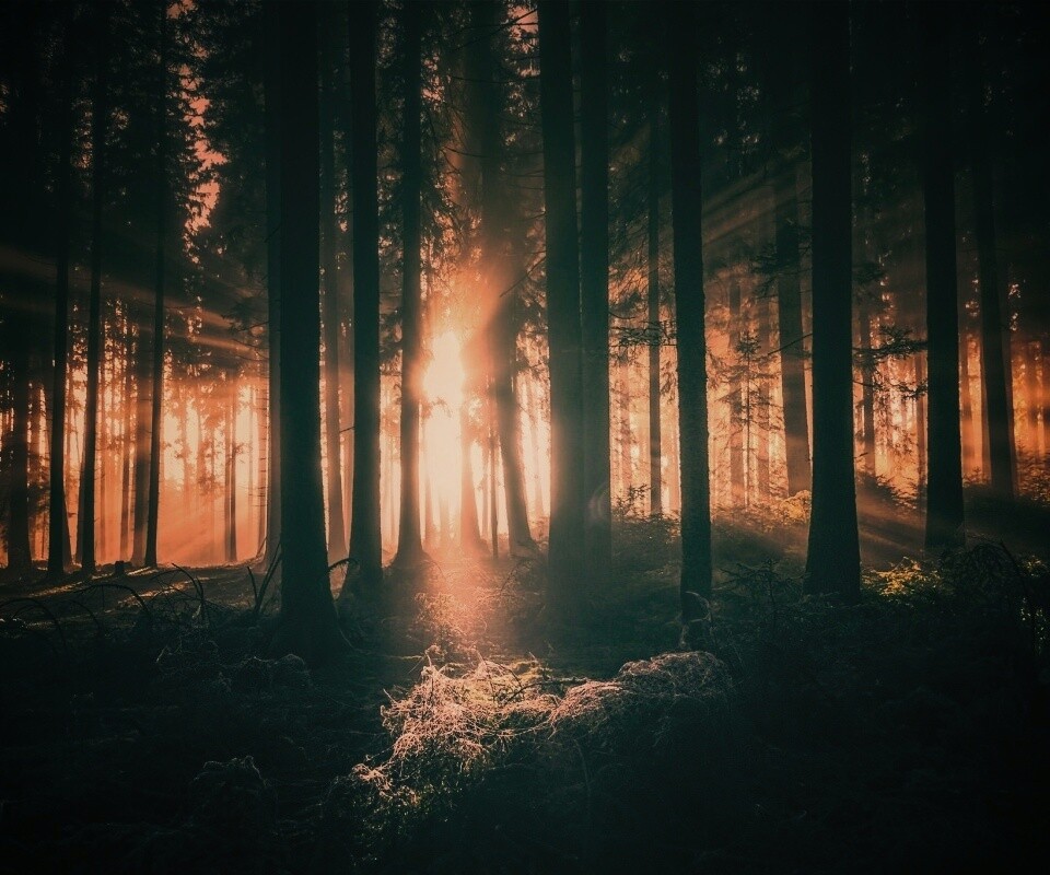 «Свет пробивается сквозь стволы деревьев»