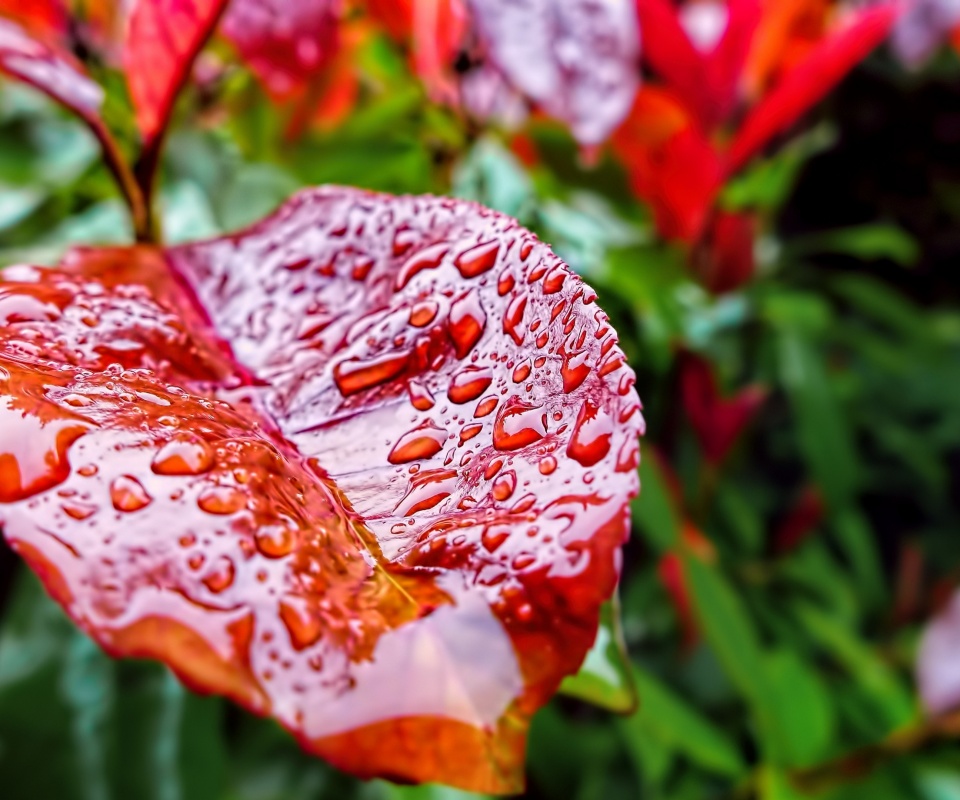 «Красный лист в каплях воды»