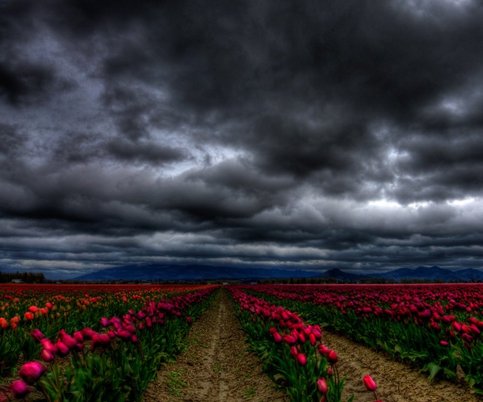 «Цветочное поле под грозовым небом»