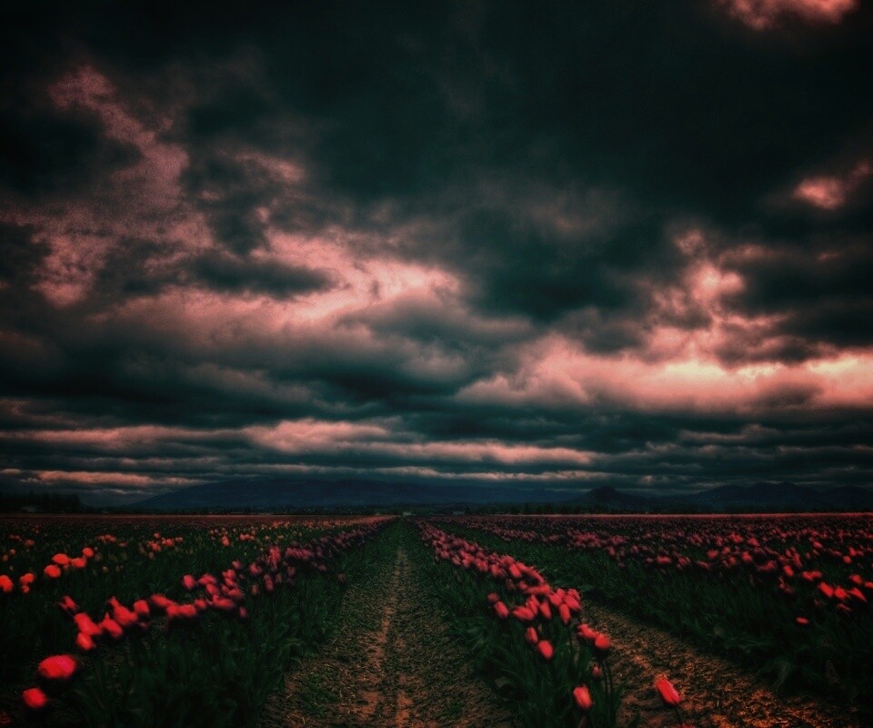 «Цветочное поле под грозовым небом»