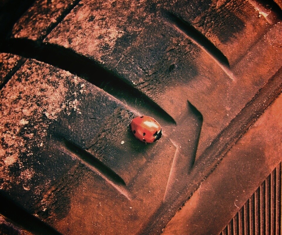 «Божья коровка на автомобильной покрышке»