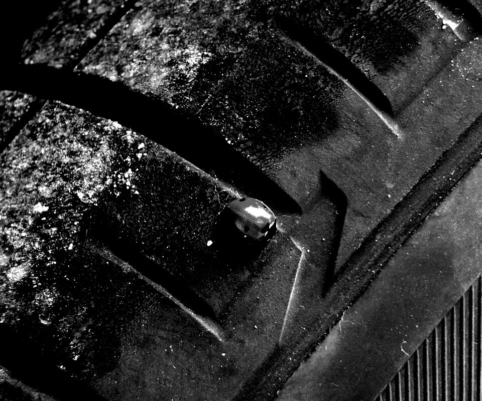 «Божья коровка на автомобильной покрышке»