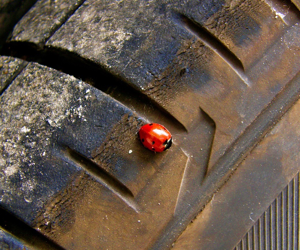 «Божья коровка на автомобильной покрышке»