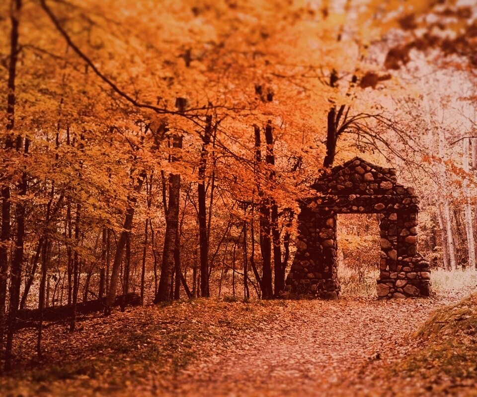 «Каменная арка в осеннем лесу»