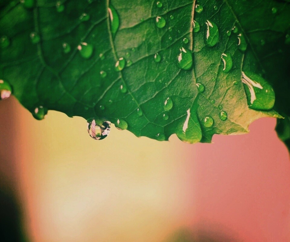 «Роса на листе в макро»