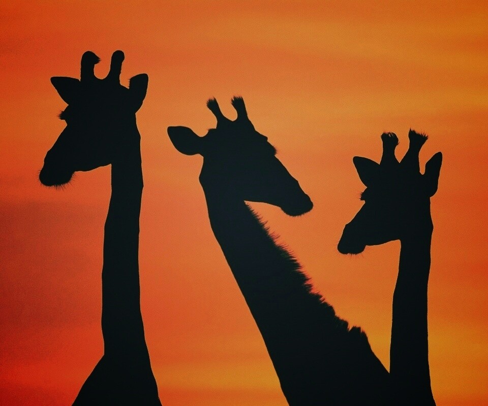 «Три силуэта жирафов на фоне неба»