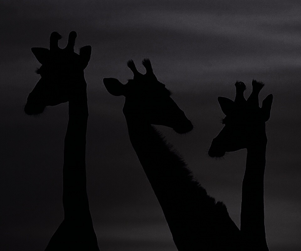 «Три силуэта жирафов на фоне неба»