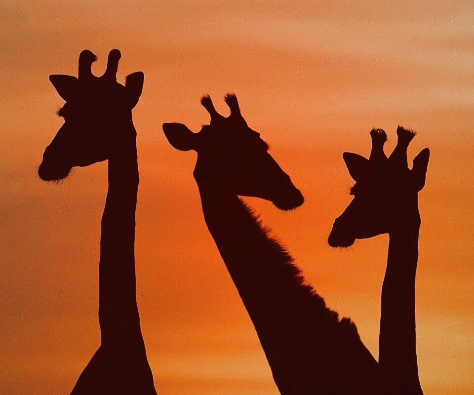 «Три силуэта жирафов на фоне неба»