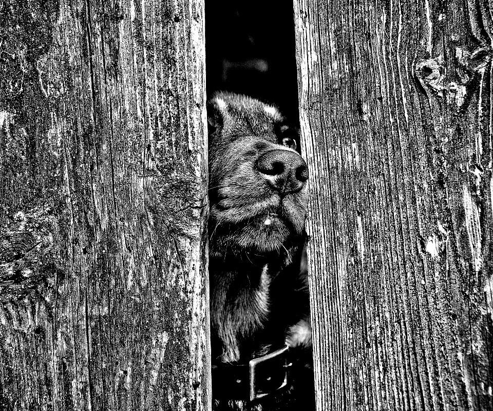 «Собака выглядывает из-за забора»