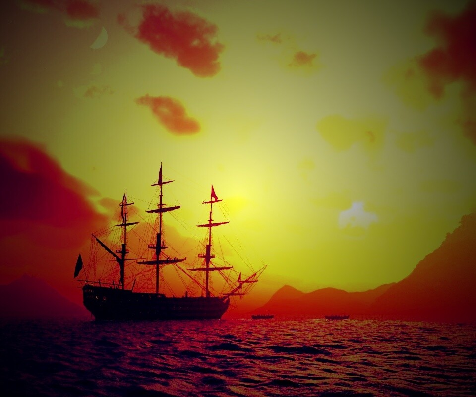 «Трехпалубный парусный корабль на закате»