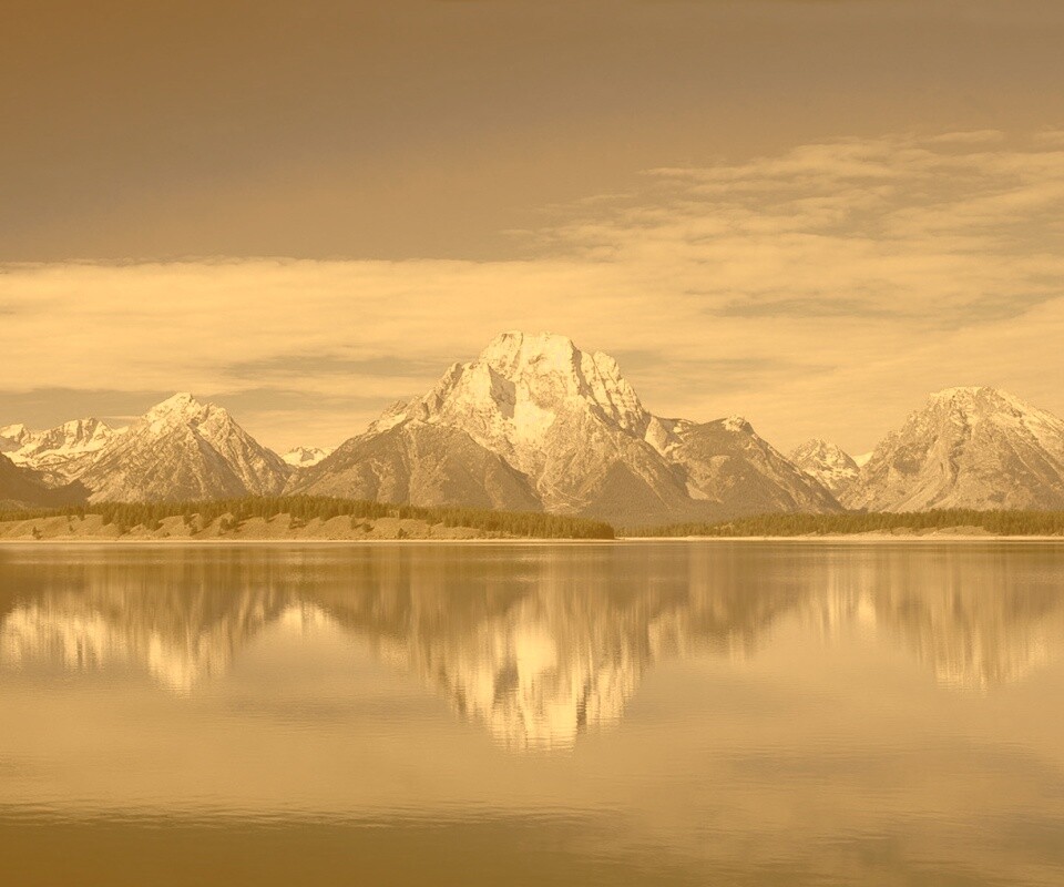 «Вид на горы за озером»
