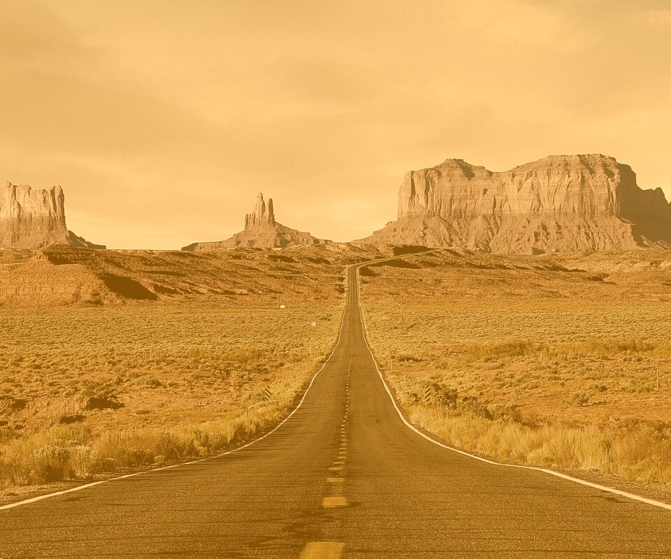 Обои для рабочего стола «Дорога в пустыне» 960х800 с фильтром kelvin (оригинал 2560х1600)