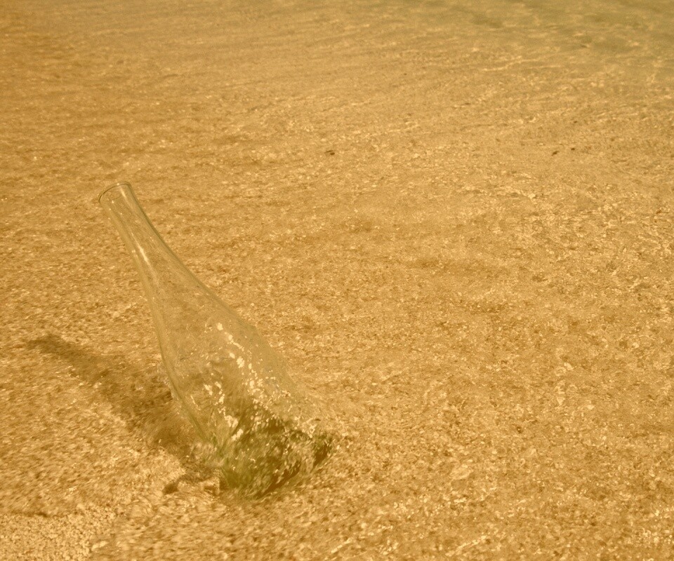 «Бутылка в песке у воды»