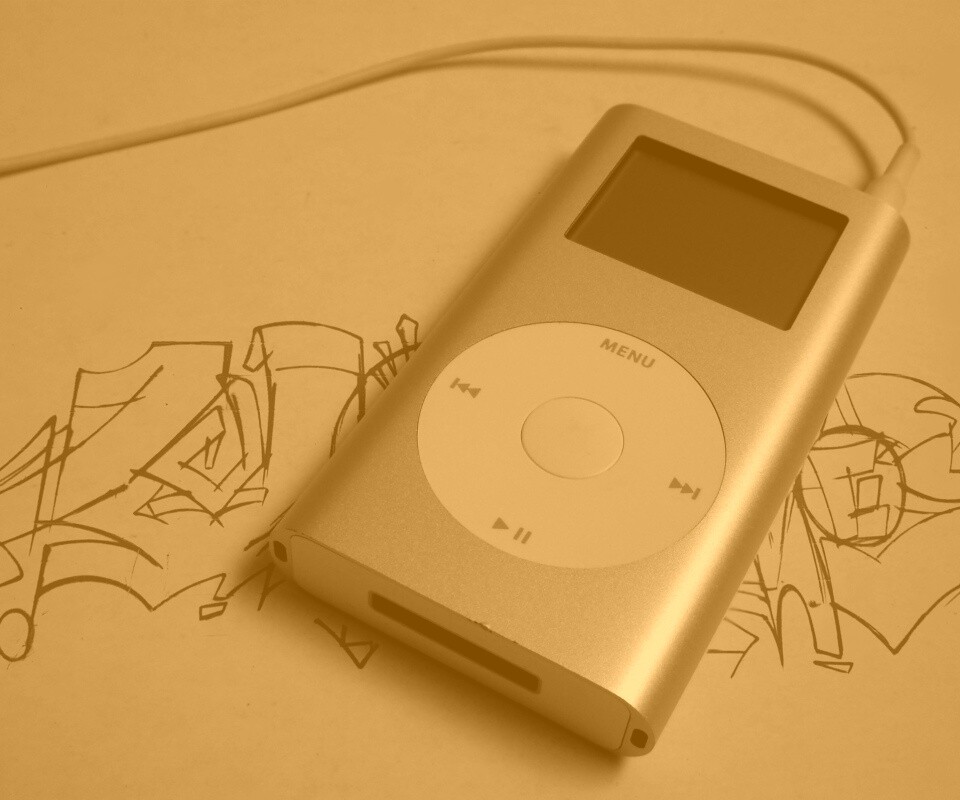 «iPod на лиске с граффити»