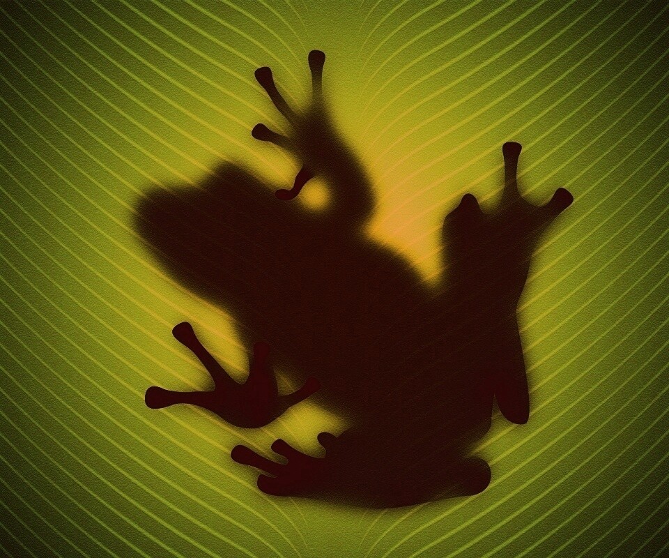 «Силуэт лягушки просвечивает сквозь зеленый лист»
