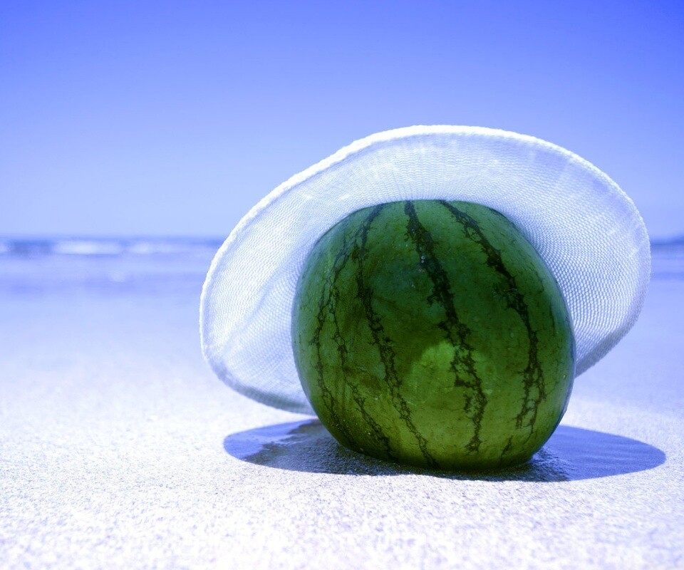 «Арбуз в летней шляпке на пляже»