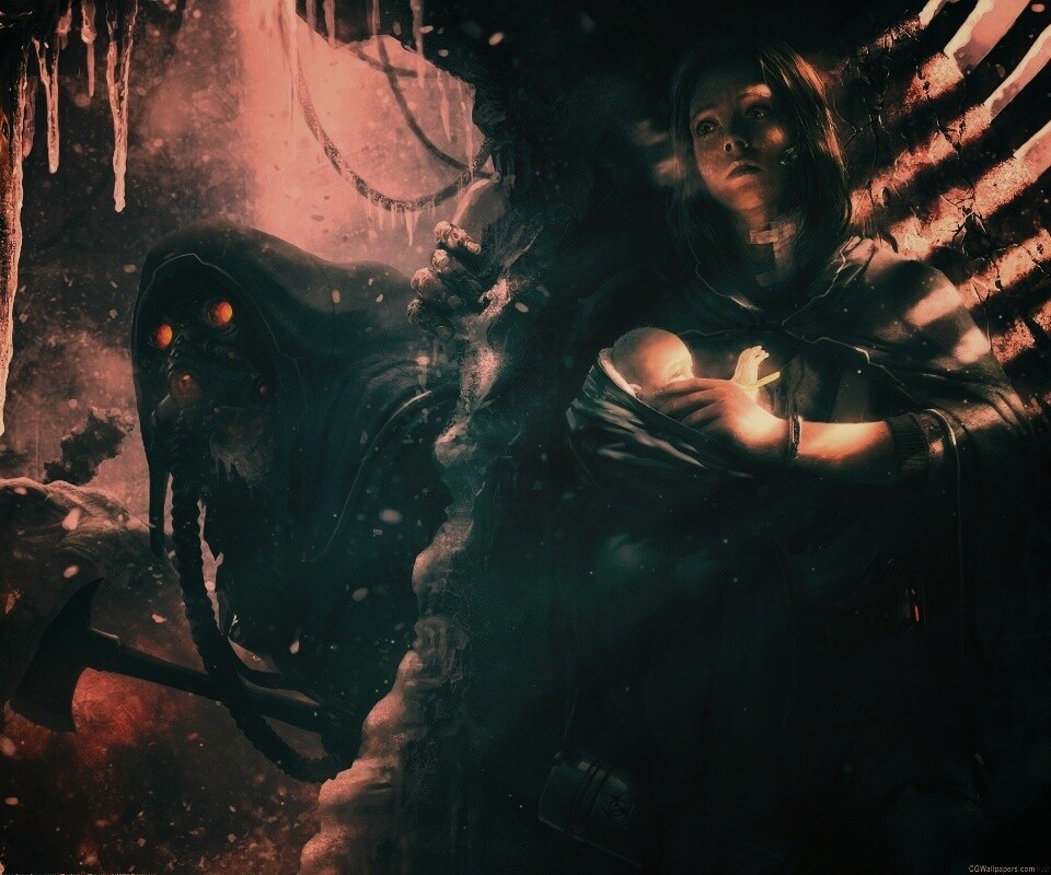 «Девушка с ребенком прячется от монстра»