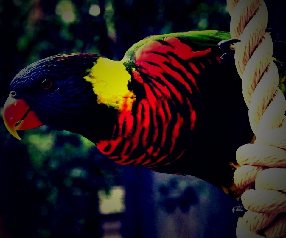 Обои для рабочего стола «Попугай на канате» 960х800 с фильтром lomo (оригинал 2560х1600)