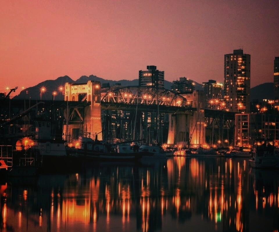 «Мост и катера на закате»