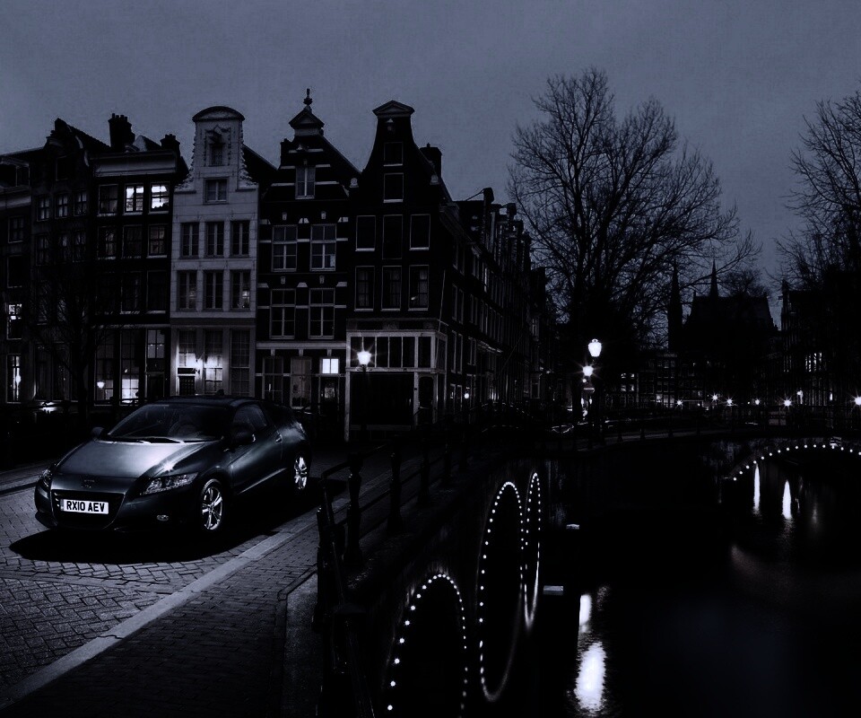 «Автомобиль на мосту в свете фонаря»
