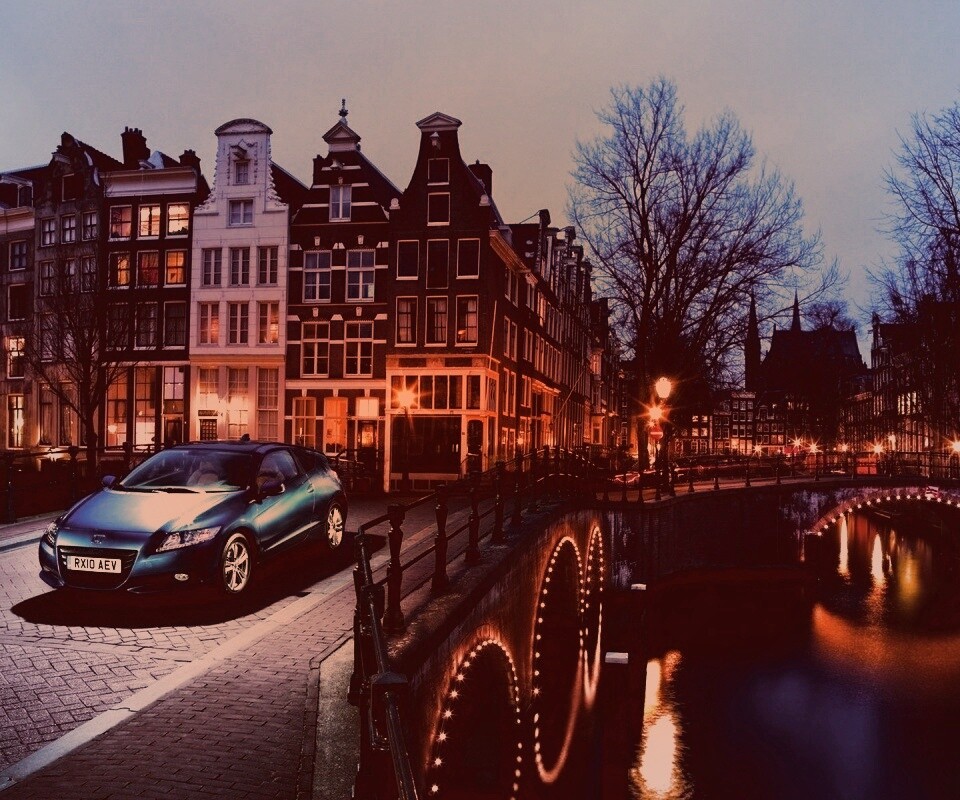 «Автомобиль на мосту в свете фонаря»