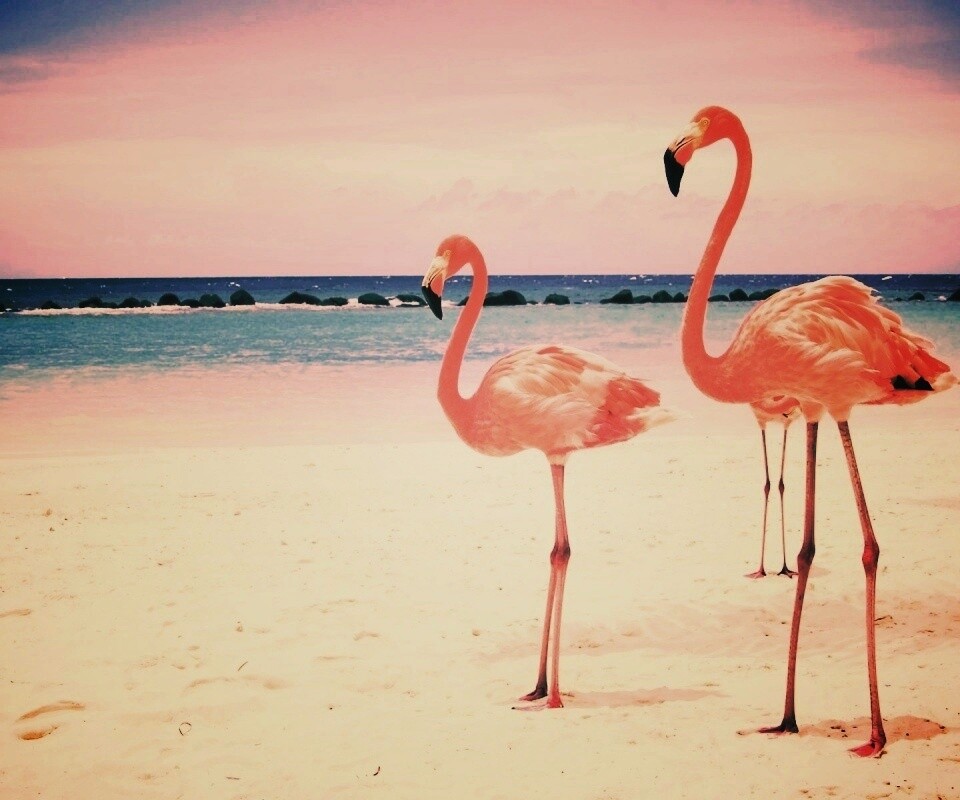 «Розовые фламинго на пляже»