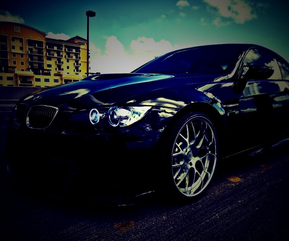 «Красивый черный BMW на парковке»