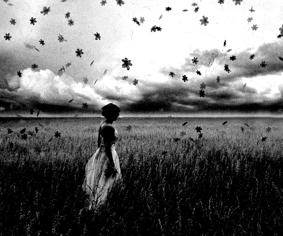 «Грустная девушка в поле травы»
