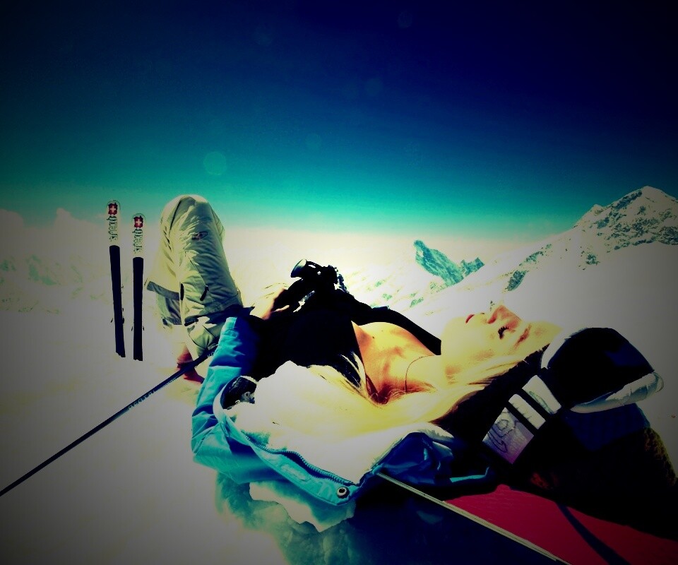 «Лыжница отдыхает в горах»