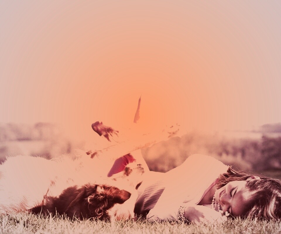 «Девушка и собака валяются на траве»
